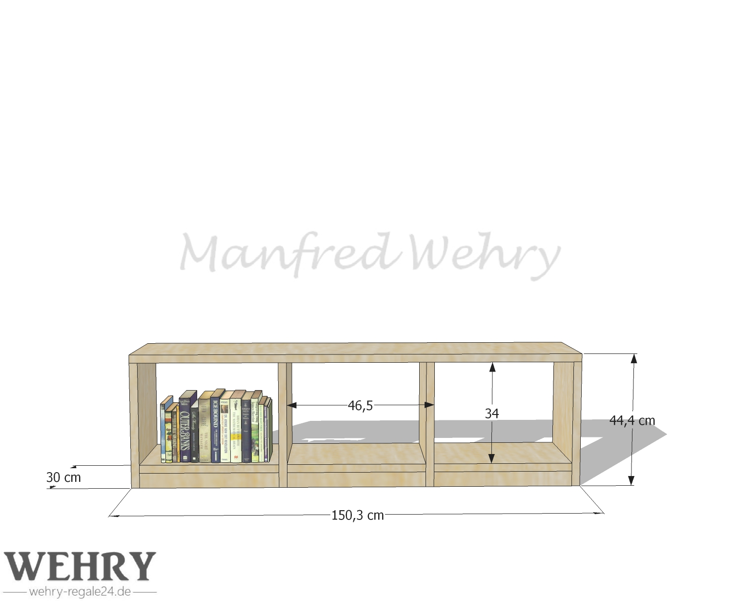 Bücherregal Eiche Massivholz 3×1 Fächer mit Abschlussdeckel
