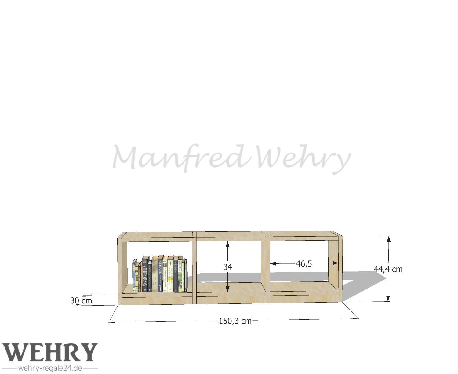 Bücherregal Eiche Massivholz 3×1 Fächer
