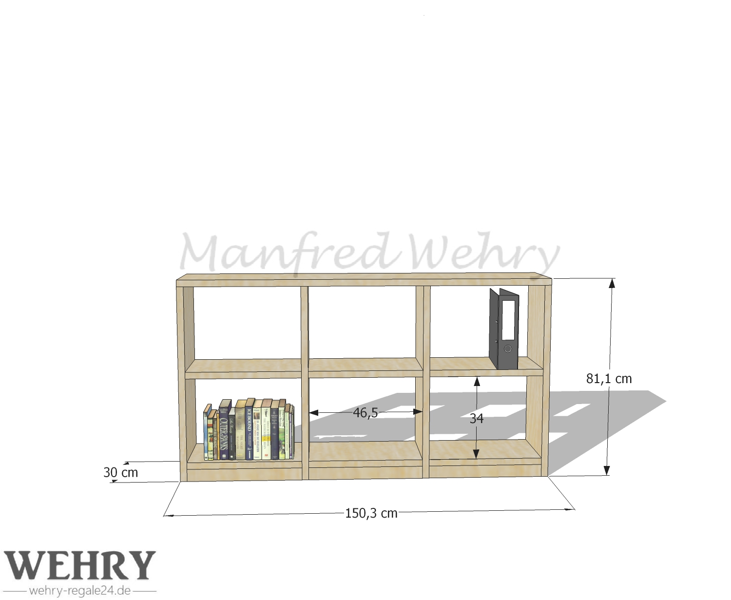 Bücherregal Eiche Massivholz 3×2 Fächer mit Abschlussdeckel