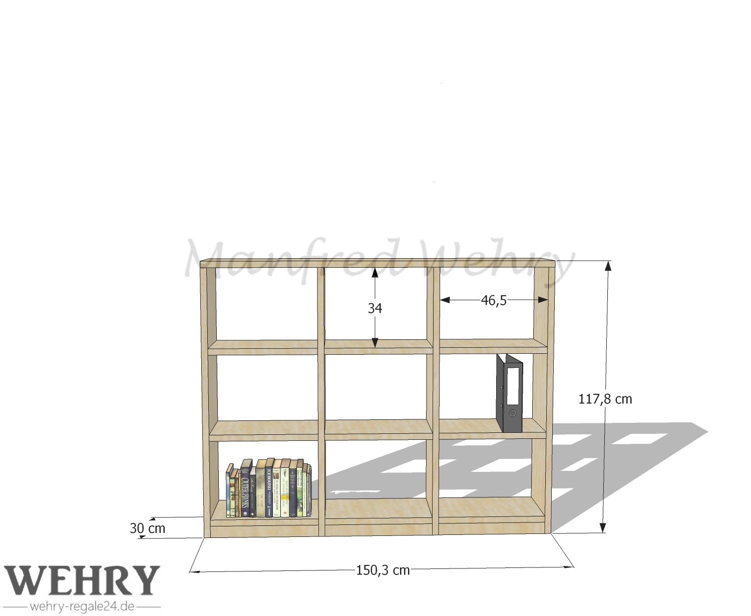 Bücherregal Eiche Massivholz 3×3 Fächer mit Abschlussdeckel