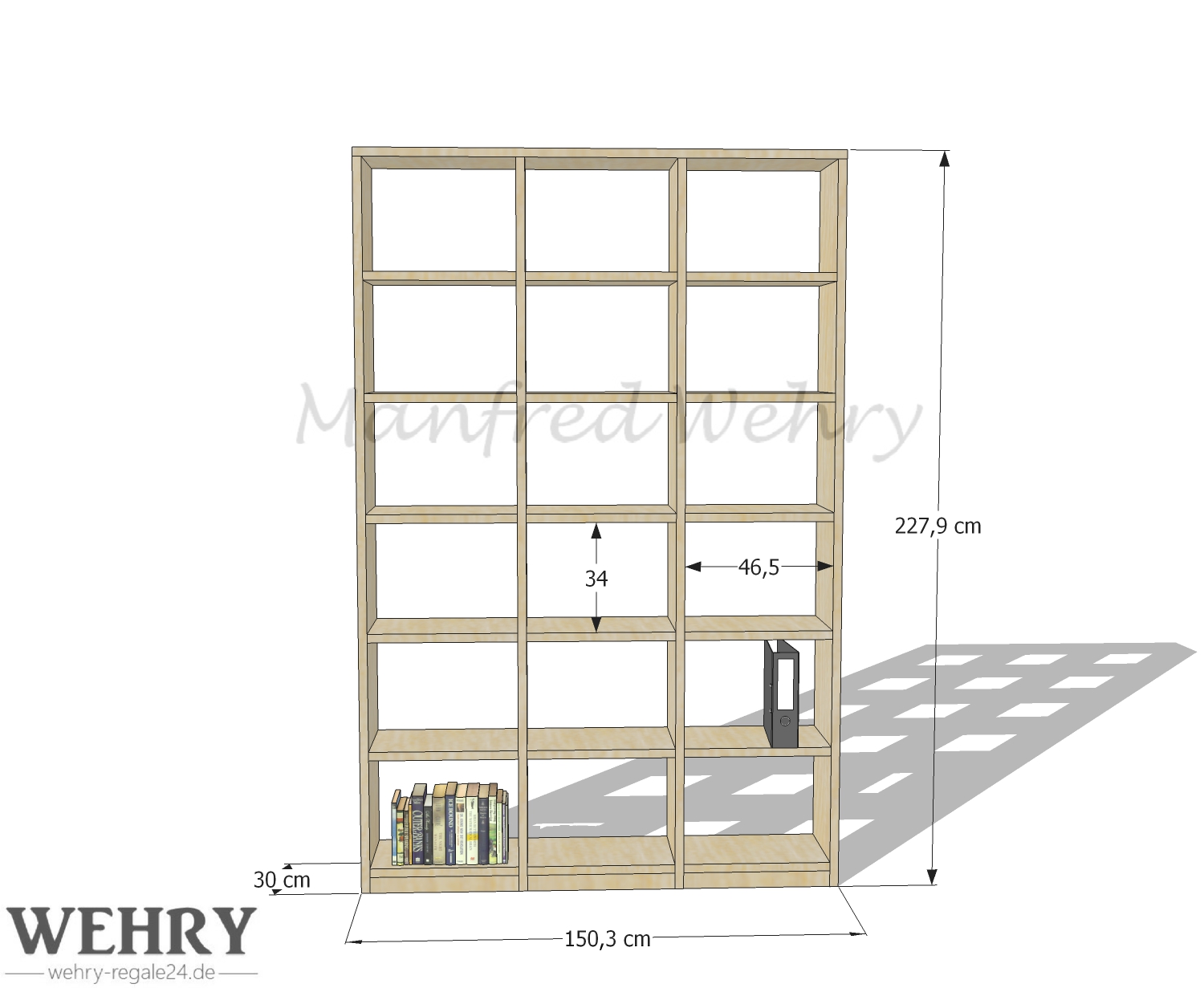 Bücherregal Eiche Massivholz 3×6 Fächer mit Abschlussdeckel