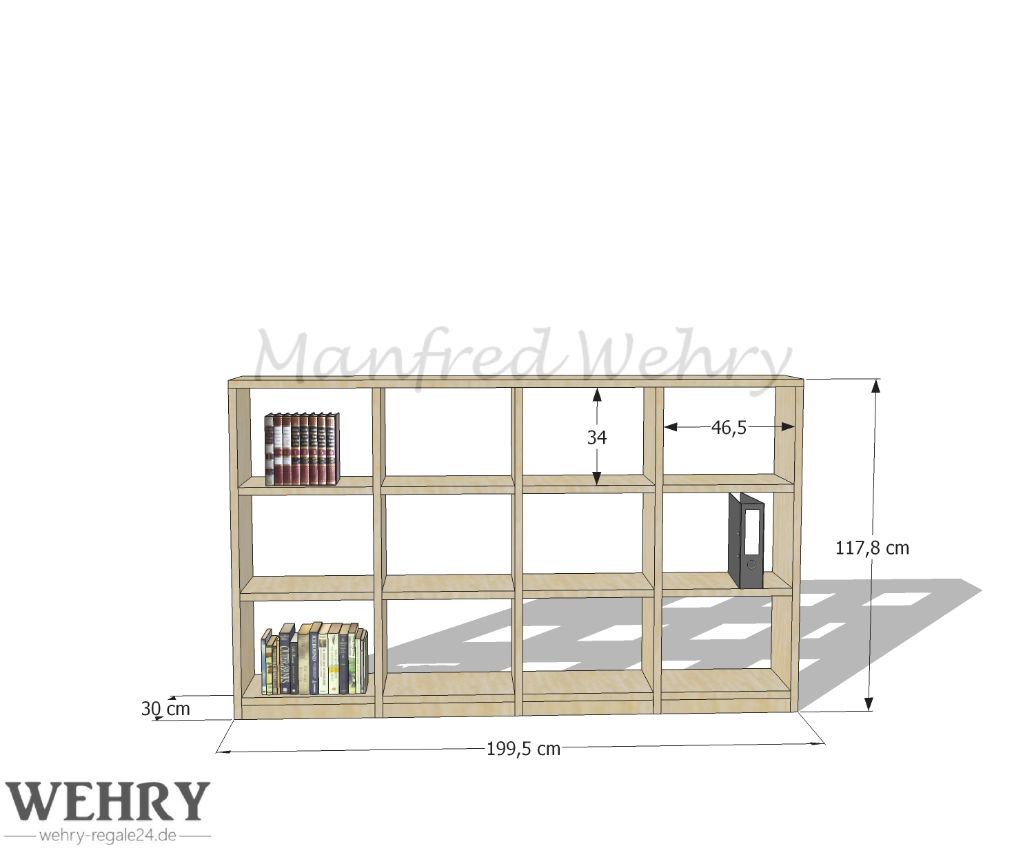 Bücherregal Eiche Massivholz 4×3 Fächer mit Abschlussdeckel