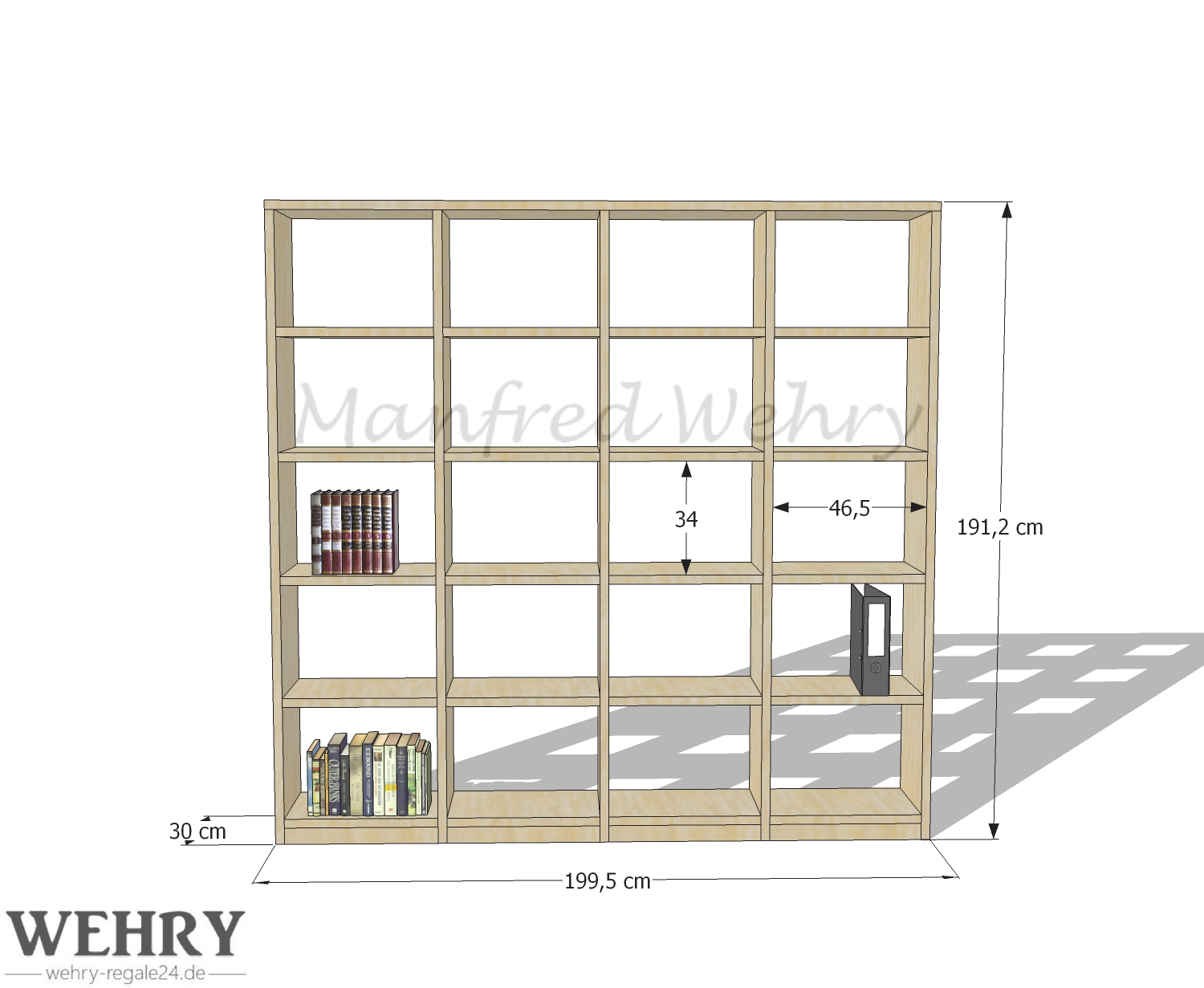 Bücherregal Eiche Massivholz 4×5 Fächer mit Abschlussdeckel