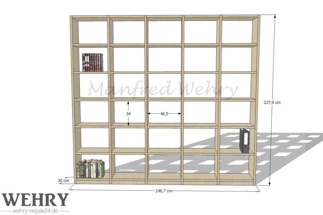 XL Bücherregal aus Kernbuche Massivholz – 248,7 cm breit – 227,9 cm hoch