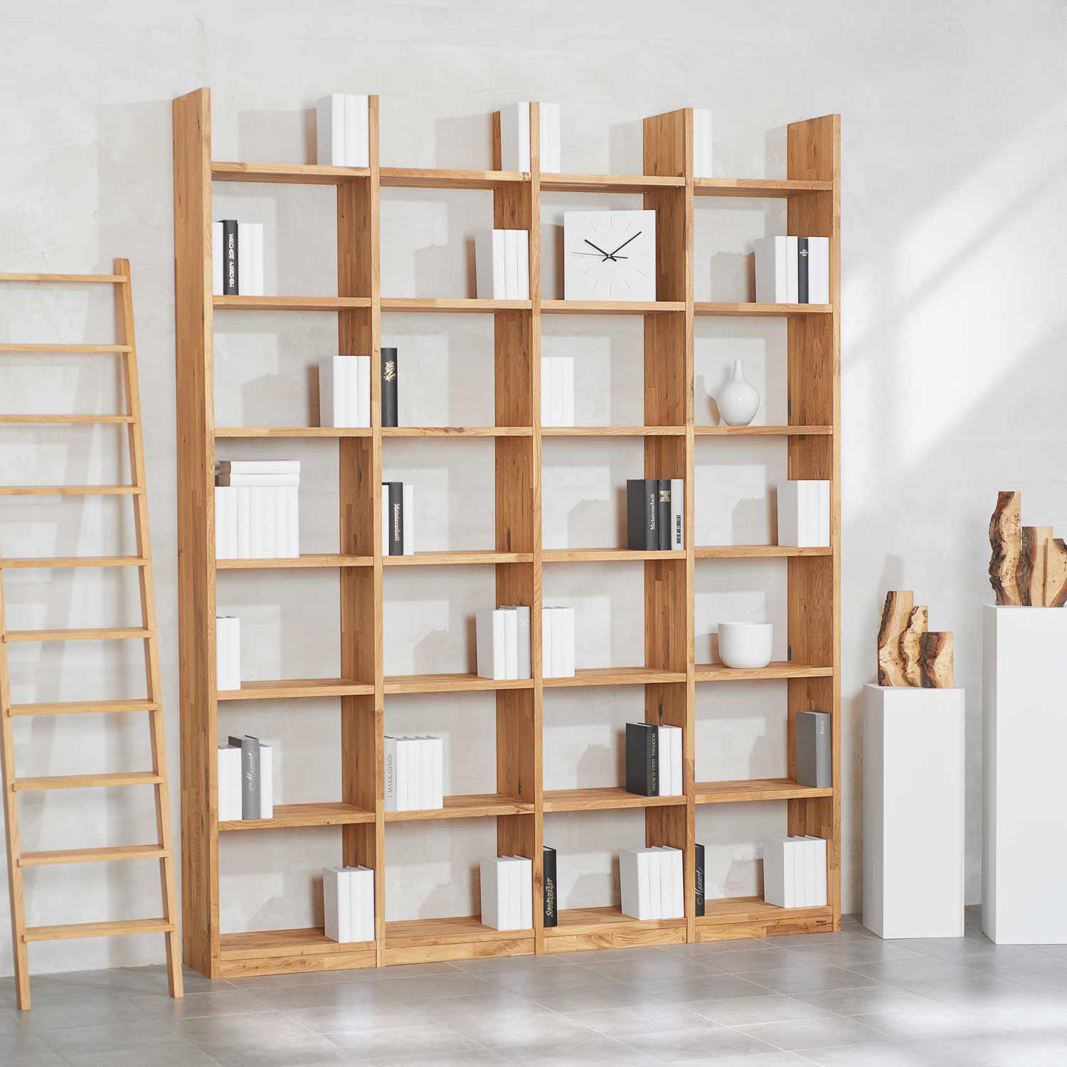 Bücherregal Wildeiche Massivholz 4×7 Fächer mit Stollenüberstand