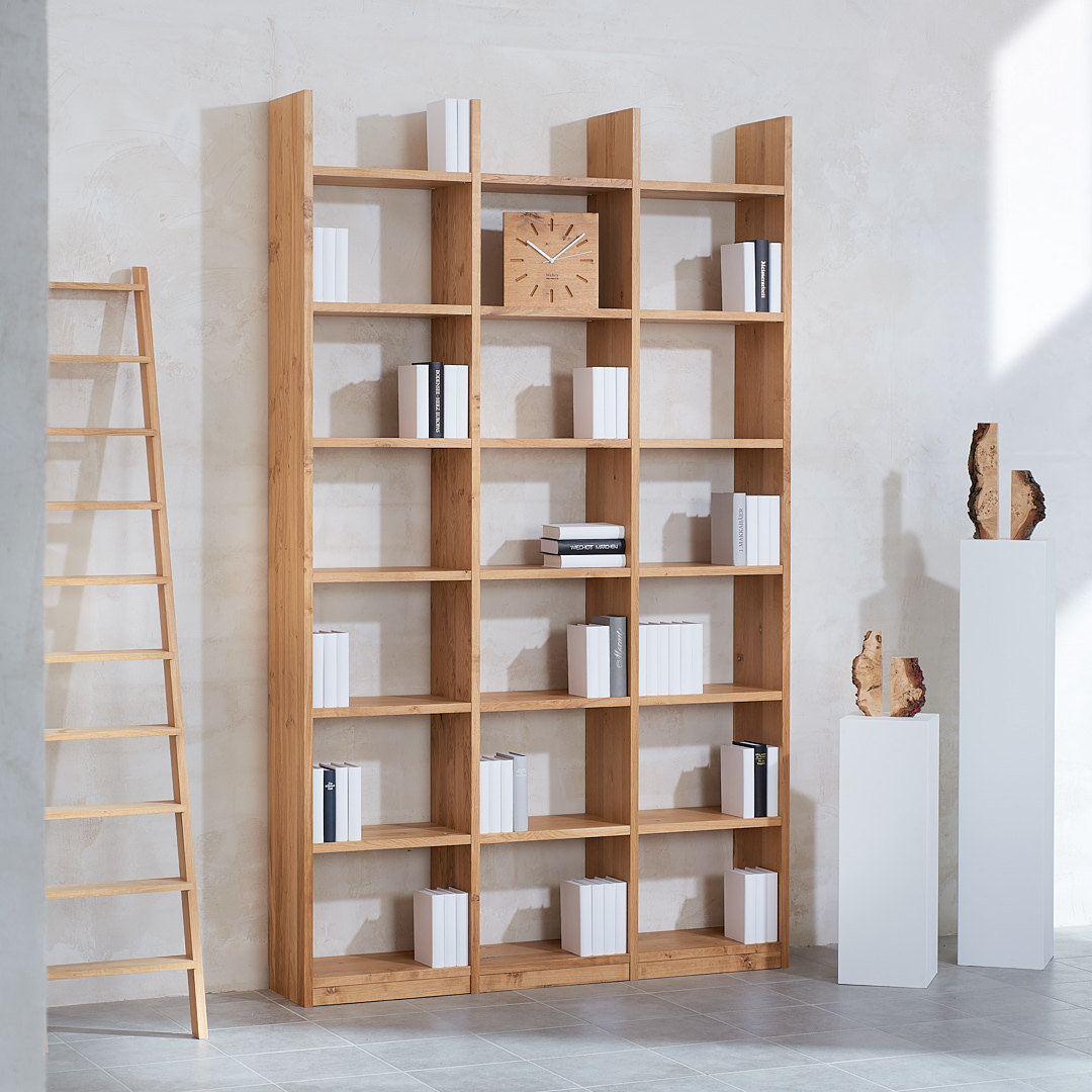 Schreiben Sie die erste Bewertung für „Bücherregal Wildeiche Massivholz Premium 3×7 Fächer mit Stollenüberstand“