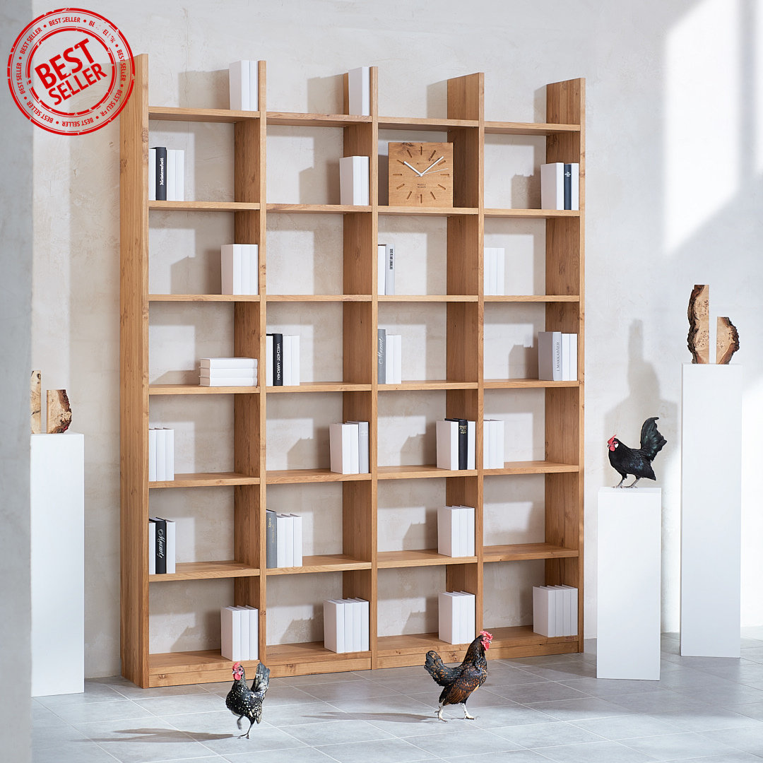 Bücherregal Wildeiche Massivholz Premium 4×7 Fächer mit Stollenüberstand
