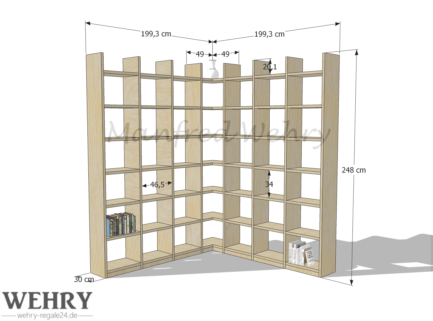 Eckregal Buche Massivholz 3×7 Fächer rechts & links mit Stollenüberstand