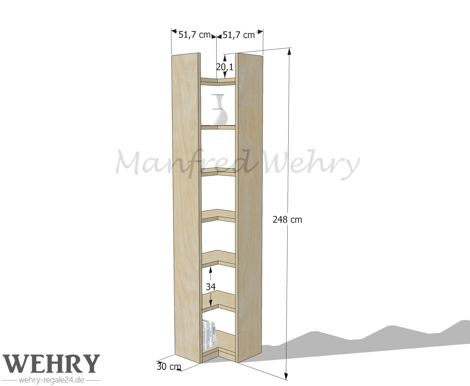 Eckregal Ecke Wildeiche Massivholz 7 Fächer mit Stollenüberstand