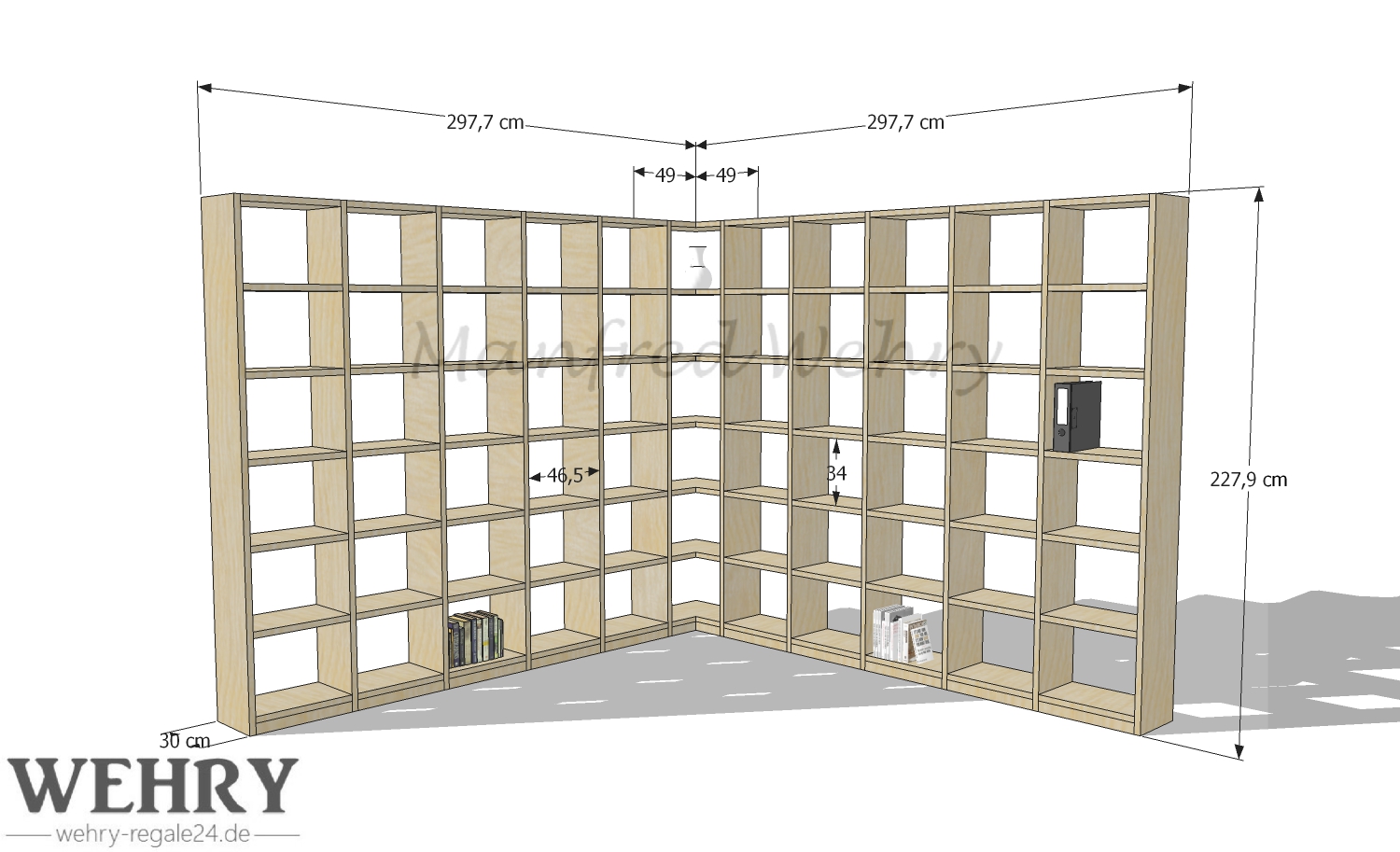 • Schenkelbreite rechts: 297,7 cm (Eckteil + 5 Fächer)