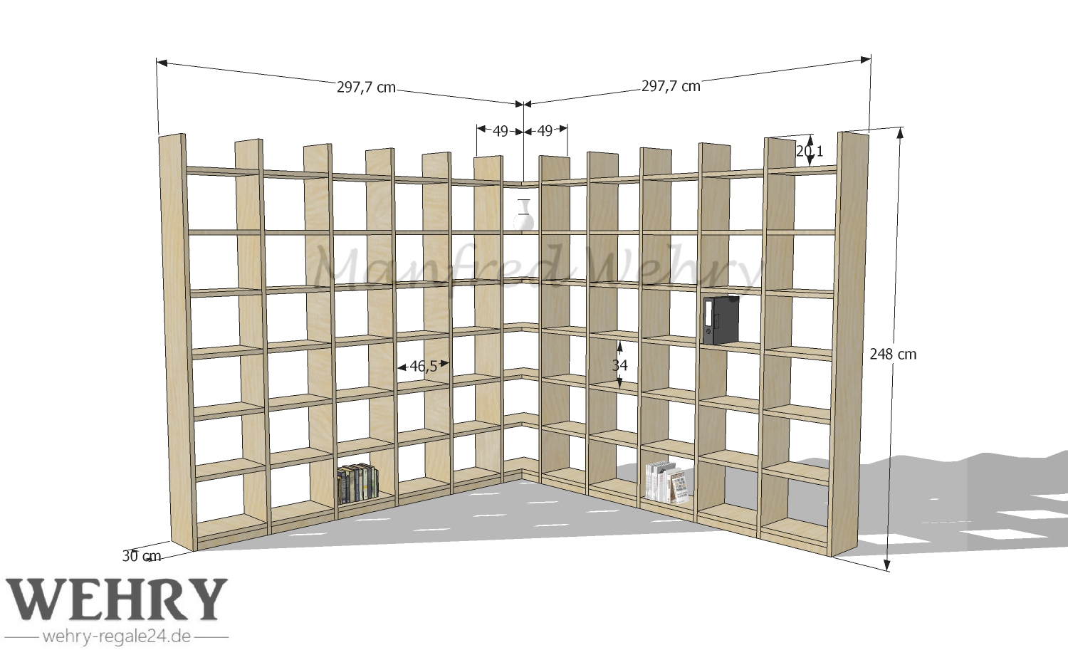 • Schenkelbreite rechts: 297,7 cm (Eckteil + 5 Fächer)