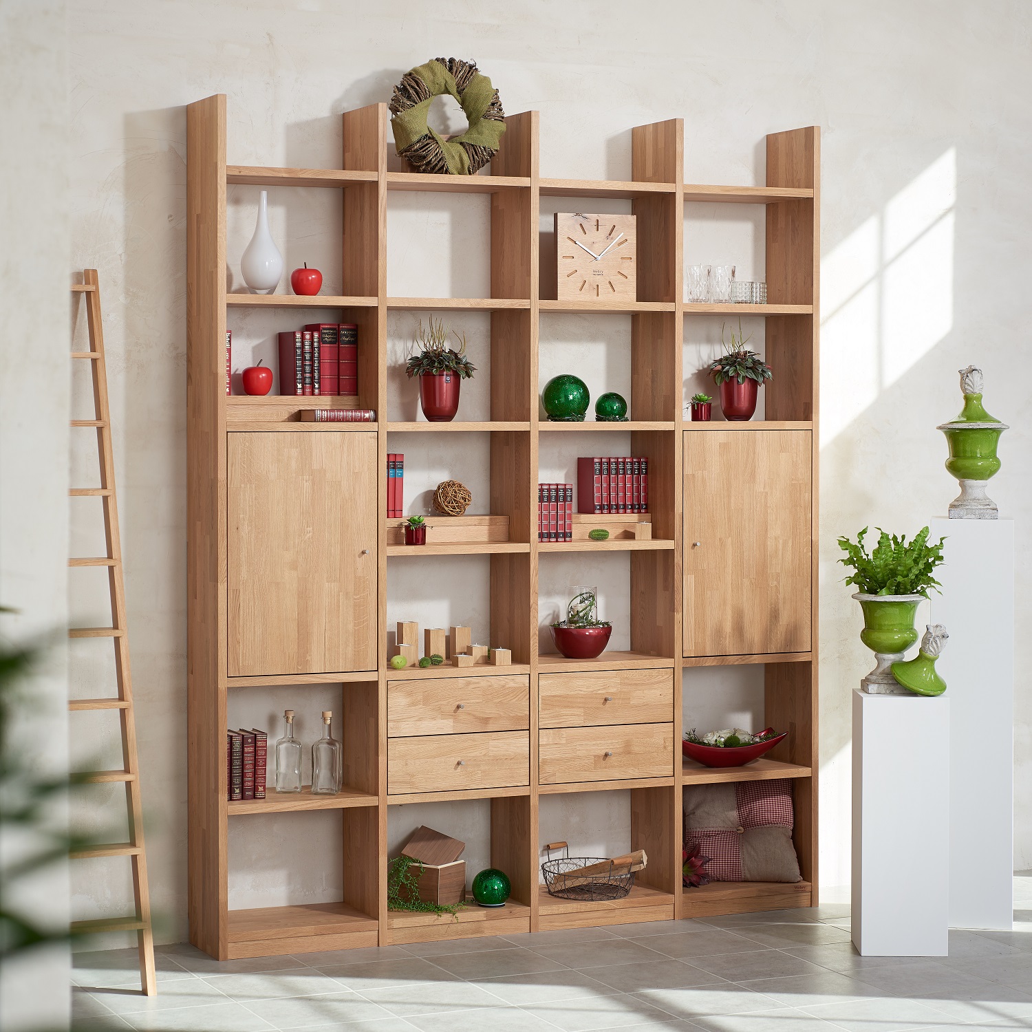 Bücherregal Eiche Massivholz mit Türen und Schubladen